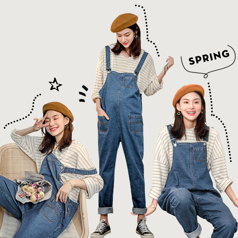 nisan尼尚孕妇牛仔背带裤套装女春秋外穿秋装加绒大码孕妇装秋冬